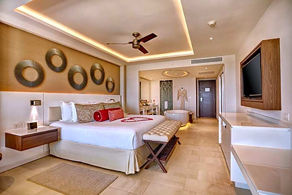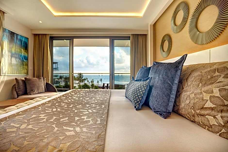 Honeymoon suite with a full bathroom with separated toilet, 2 washbowls and indoor bath tub. Balcony with ocean views.
